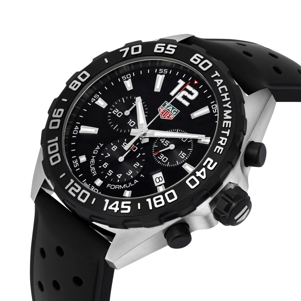 Setting the highest standards for sports inspired watch design, this TAG Heuer Formula 1 chronograph captures the adrenaline-rush of high-speed motor racing.