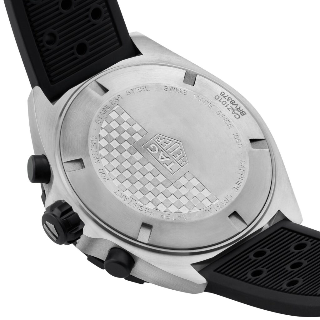 - Powered by a TAG Heuer quartz movement