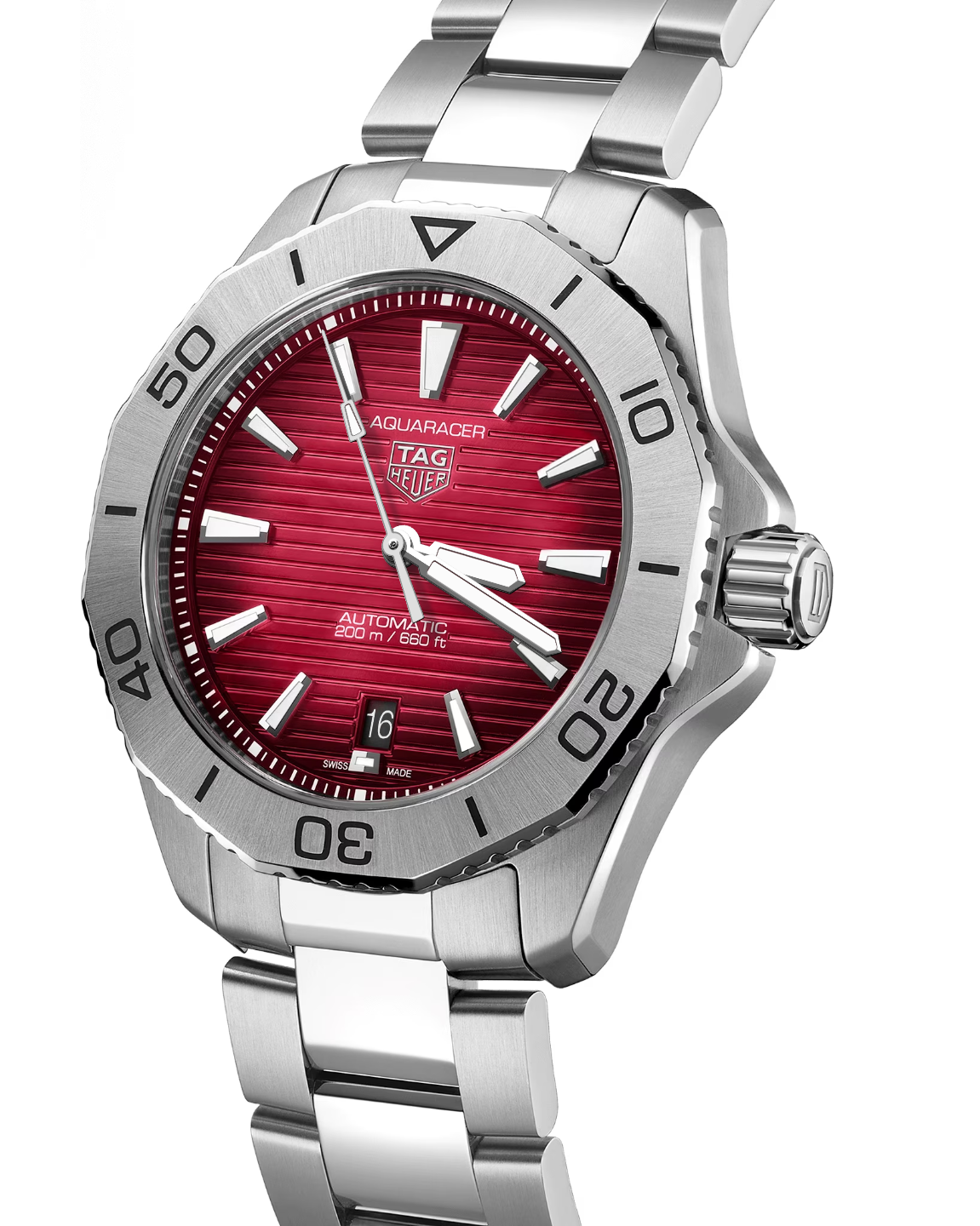 The TAG Heuer Aquaracer Professional 200 WBP2114.BA0627 is a striking addition to the Aquaracer collection, designed to embody TAG Heuer’s legacy of precision and style. This timepiece combines sporty elegance with robust functionality, perfect for both underwater adventures and everyday wear. The standout feature of this watch is its deep red sunray dial, which radiates a bold statement while ensuring easy readability in all lighting conditions.