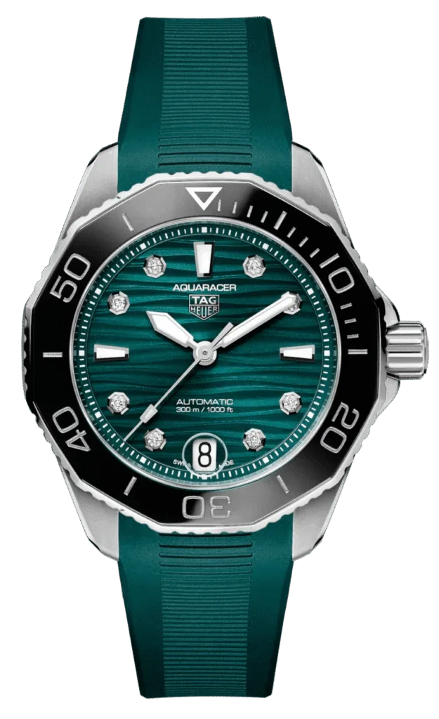 Take a dip in the intensely refreshing waters of lagoons and coral reefs that inspire this TAG Heuer Aquaracer. The vivid, VS diamond-studded 1.40mm (0.078 ct) dial stands out and the professional, life-proof case is as robust as ever, helping you overcome your personal limits.