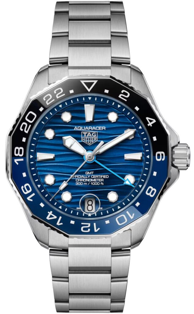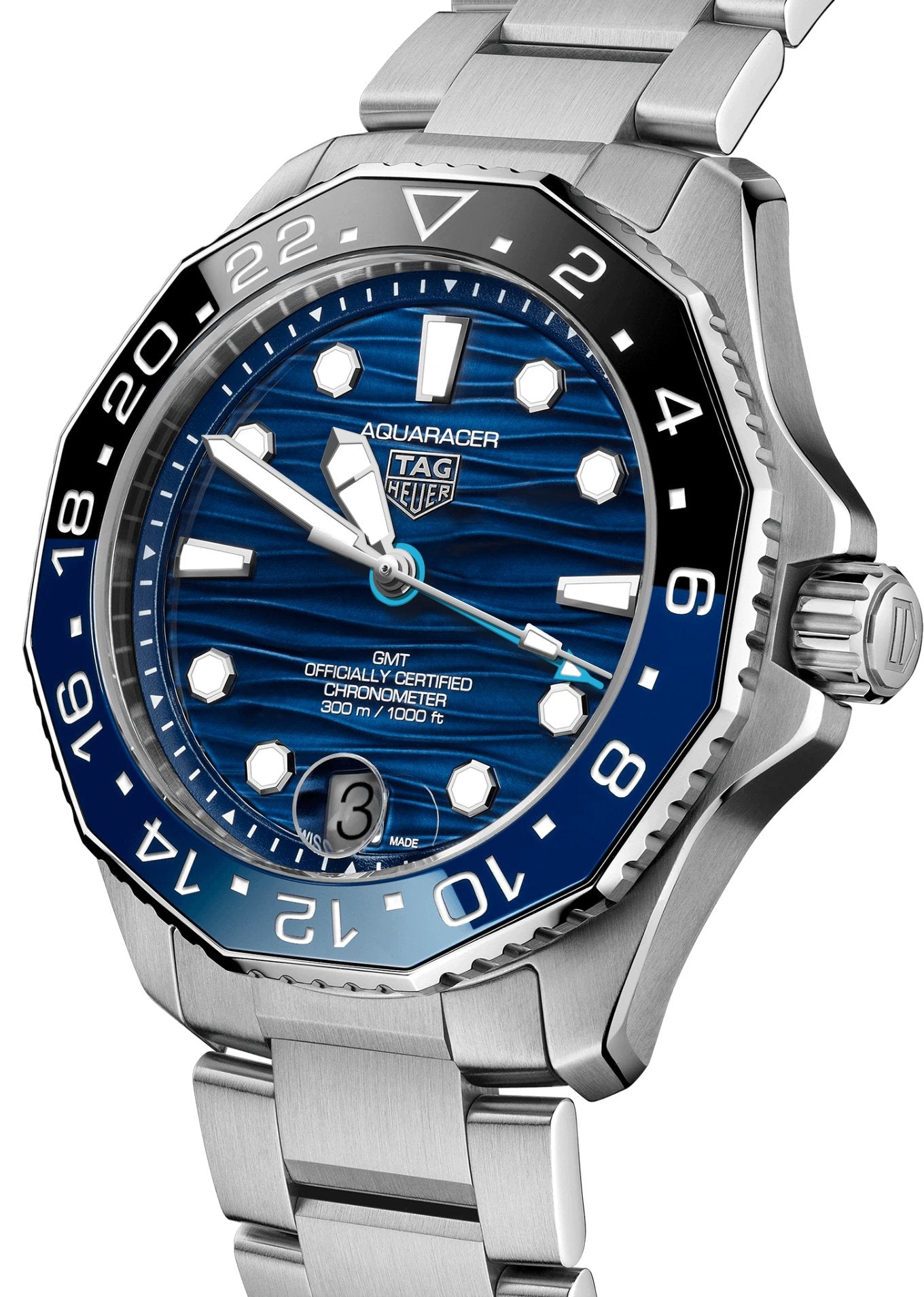 TAG Heuer Watch Aquaracer Professional 300 GMT Bracelet WBP5114.BA0013. Tame the high seas with this TAG Heuer Aquaracer Professional 300, your ultimate maritime companion. Crafted in ultra-robust steel and ceramic, and powered by the Calibre TH31-03 movement, this enduring 42 mm timepiece is designed for those who crave the thrill of the open sea.