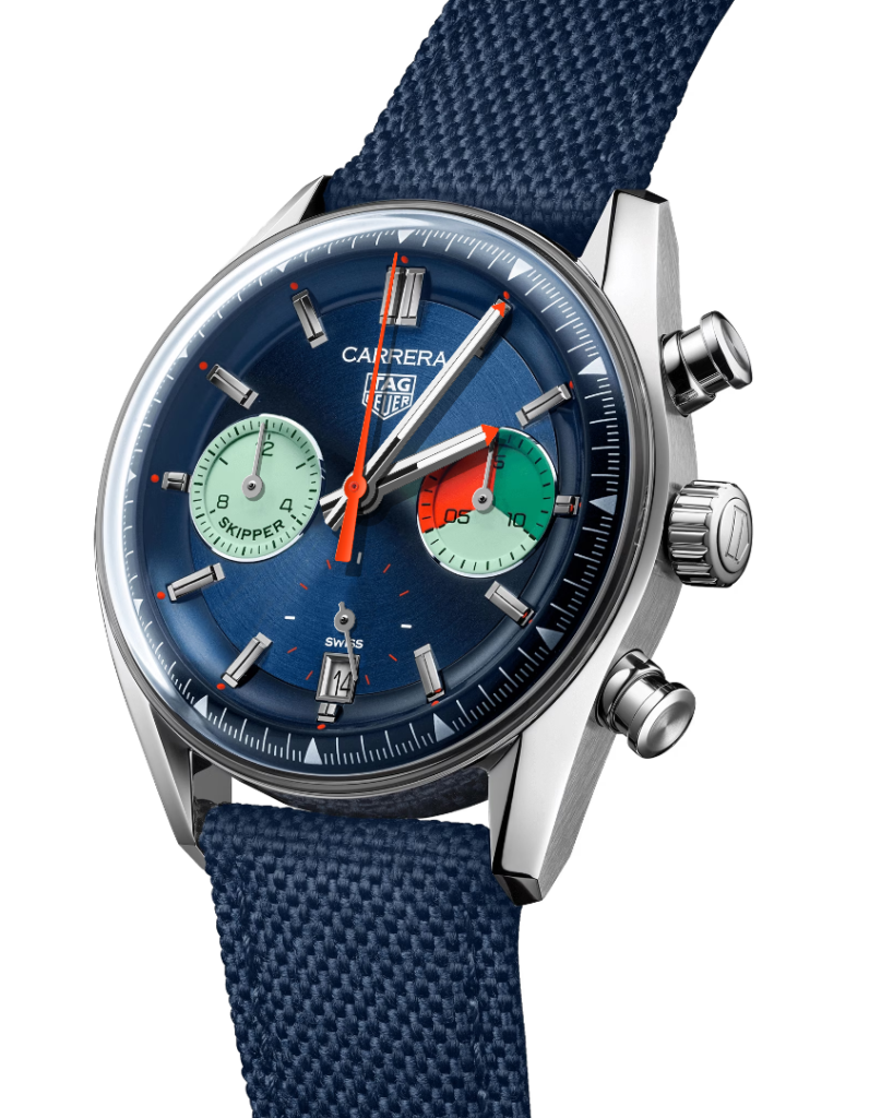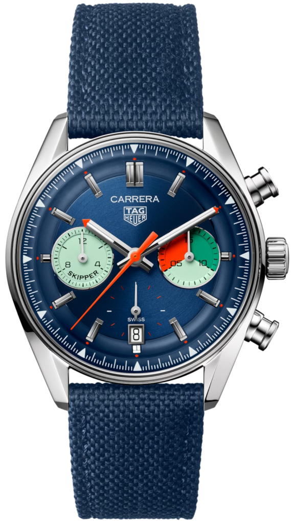TAG Heuer Watch Carrera Skipper CBS2213.FN6002. Sailing’s natural affinity with motorsports and its relentless passion for precision and speed inspires this signature TAG Heuer Carrera “Skipper”. A daring tribute to our sailing heritage conveyed through a distinctive colour scheme. Resolutely iconic.
