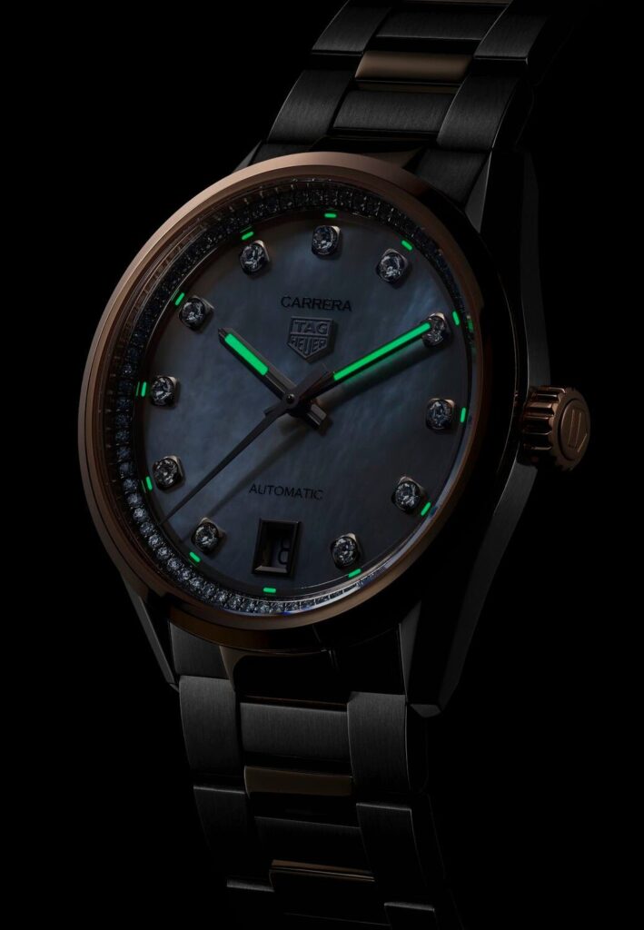 - Super LumiNova coated hands and date window at 6 o’clock