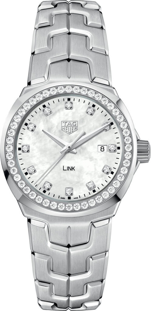 The reigning queen of TAG Heuer watches, this TAG Heuer Link Ladies watch glistens with every movement of the wrist and adds an elegant and glamorous finish to an outfit. Exquisitely designed to be worn both day and night, the femininely sized 32mm diamond decorated stainless steel case is paired with the brand’s famous Link bracelet engineered by legendary designer Eddy Schopfer. The stainless steel strap boasts complex and beautifully contoured links that sit effortlessly against the skin while its chic geometry conveys itself as a symbol of style and sophistication.Â