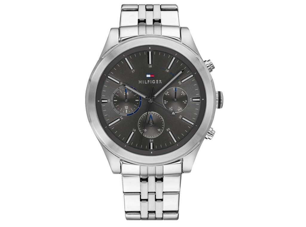 Tommy Hilfiger men’s watch. Perfect timing our bracelet watch with sub-dials. Crafted in weighty stainless steel for a classic finish.