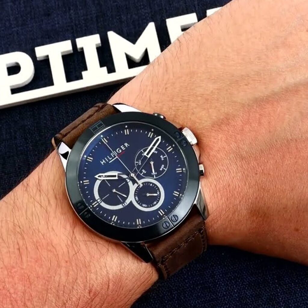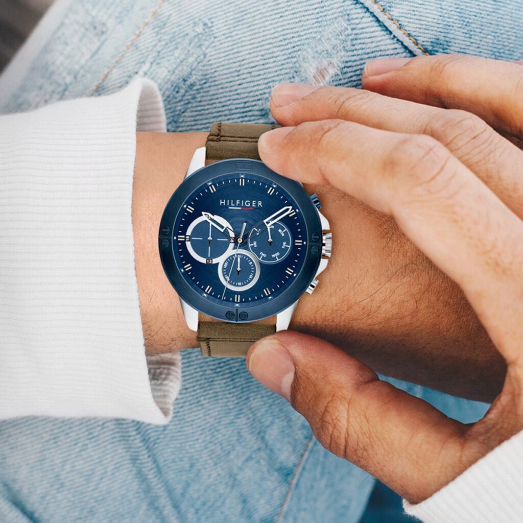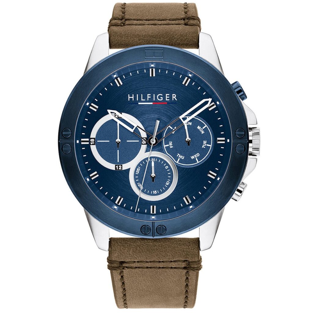 Tommy Hilfiger Harley 1791895 is a functional and very impressive Gents watch from HARLEY collection. Case material is Plated Stainless Steel while the dial colour is Blue. 50 meters water resistance will protect the watch and allows it to be submerged in water for periods, so can be used for swimming and fishing. It is not recommended for high impact water sports.Â