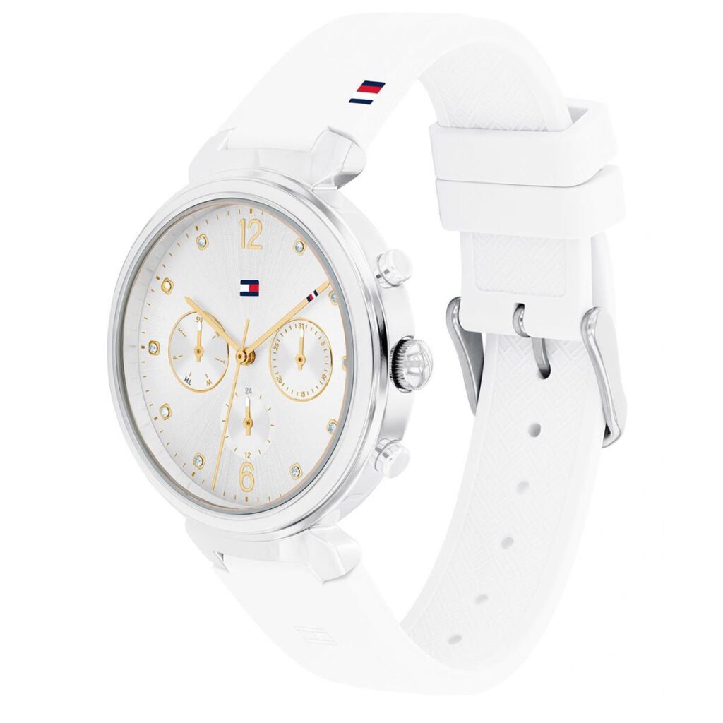 An elegant and elevated sport featuring a Tommy twist on classic elements. A 38MM case features a sunray multifunction dial with polished crystal markers. Available in stainless steel, carnation-gold, gold-plated, and two-tone finishes. Attached with a link bracelet or silicone straps. 3 ATM/ 30 Meters