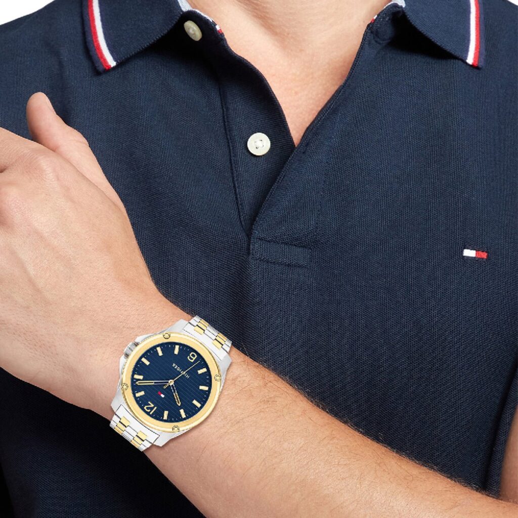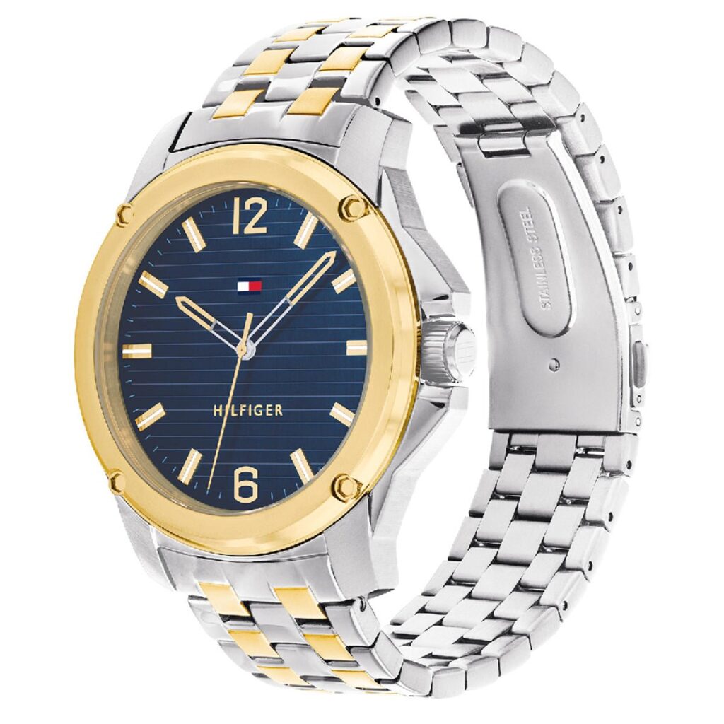 This Tommy Hilfiger watch has a stainless steel case 44 mm in diameter and is fitted with a metal strap. Inside the case lies a Miyota movement and the watch features a Mineral crystal.