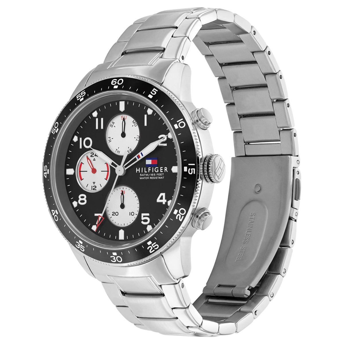 Aviator inspired, nostalgic and distinctive. Whether adventuring across town or across the tarmac this casual watch will keep you perfectly on time. Boldly styled with case and lugs, Sunray dial with flag accents and an arrow sweep. Integrated link bracelets and leather straps with a trio of sub-dials showing days of the week, date and 24-hours. 44MM