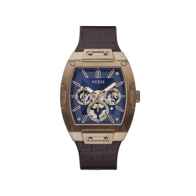Guess Phoenix Gents Rose Tone Leather Strap Watch GW0202G2