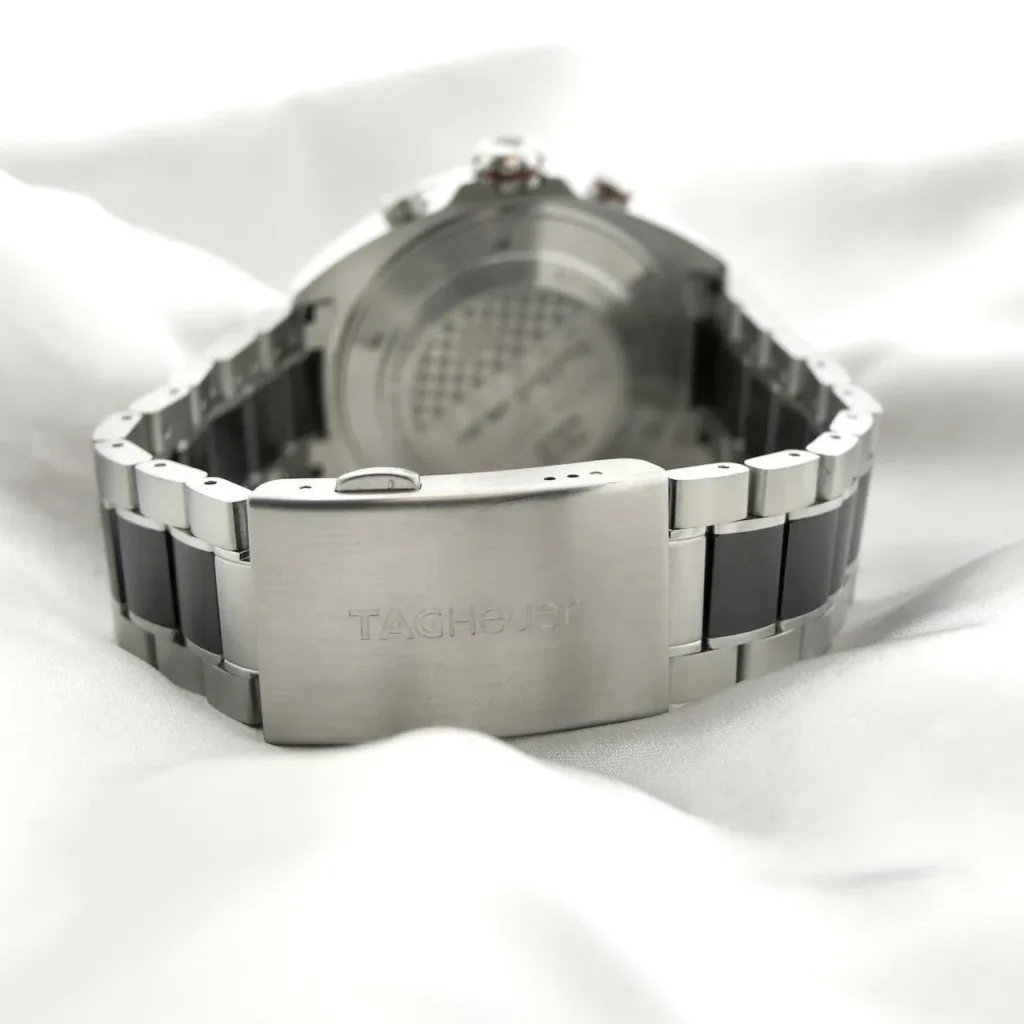 - Case Back: Solid stainless steel, engraved with TAG Heuer logo