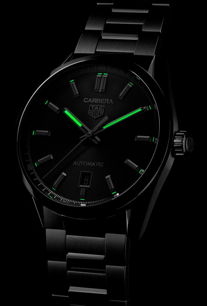 Renowned for their highly accurate and powerful movements, TAG Heuer have equipped this TAG Heuer Carrera watch with one of their famous Swiss made self-winding calibres. The Calibre 5 automatic movement brings to life the hour, minute and seconds function and a date window at 6 o’clock on a textured black dial. The functions are displayed using sleek rhodium plated hands with white Superluminova inserts and matching rhodium plated applied indexes. Protecting the dial is a layer of sapphire crystal glass famed for its scratch resistance and crisp legibility equipped to a 39mm stainless steel case with an exhibition case back. For one final touch of sophistication, this TAG Heuer Carrera watch for men is fitted with a H-shaped three-row link stainless steel bracelet and a folding clasp with push buttons.